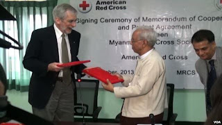 ျမန္မာႏုိင္ငံအတြင္း ဒီမုိကေရစီအေရး ျပဳျပင္ေျပာင္းလဲမႈေတြ စတင္ ေဖာ္ေဆာင္လာၿပီးေနာက္ပုိင္း ႏုိင္ငံတကာ အသင္းအဖြဲ႔ေတြ၊ NGO အဖြဲ႔အစည္းေတြ တဖြဲဖြဲ ေရာက္လာၾကတာမွာ အေမရိကန္ႏုိင္ငံ ၾကက္ေျခနီအသင္းနဲ႔ တခု အပါအ၀င္ ျဖစ္ပါတယ္။